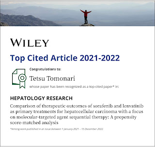 当講座 友成 哲 助教による原著論文2編が、JGH OpenとHEPATOROGY RESEACH2誌でWILEY Top Cited Article 2021-2022を受賞する快挙を達成しました。